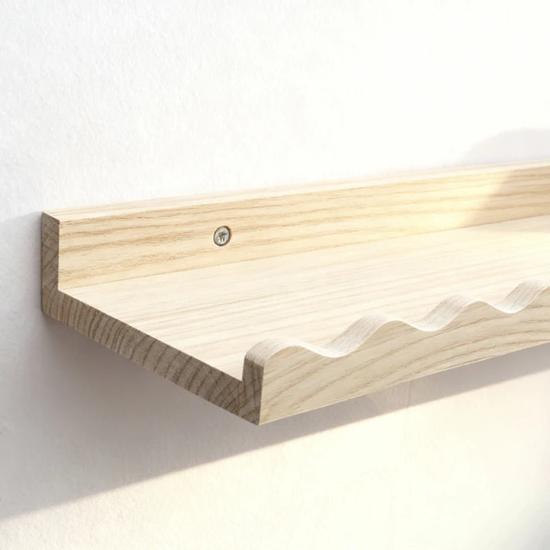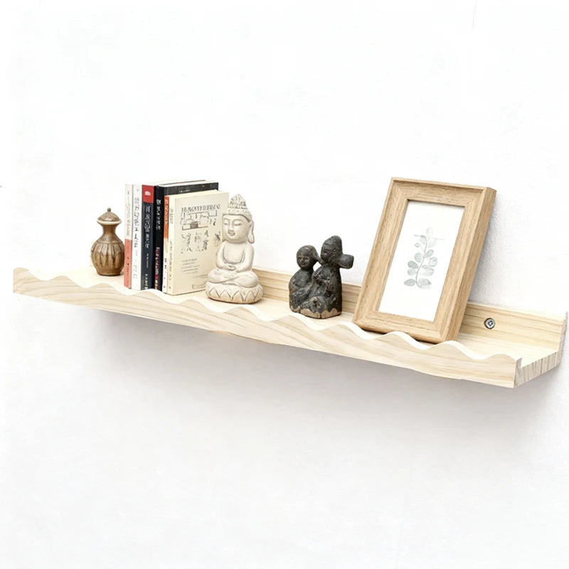 Denna vackra flytande hylla i massivt furuträ kombinerar funktion med estetik. Med sin mjukt böjda kant och naturliga trästruktur passar den perfekt i barnrum, hall, vardagsrum eller sovrum – och skapar en varm, skandinavisk känsla i vilket rum som helst.